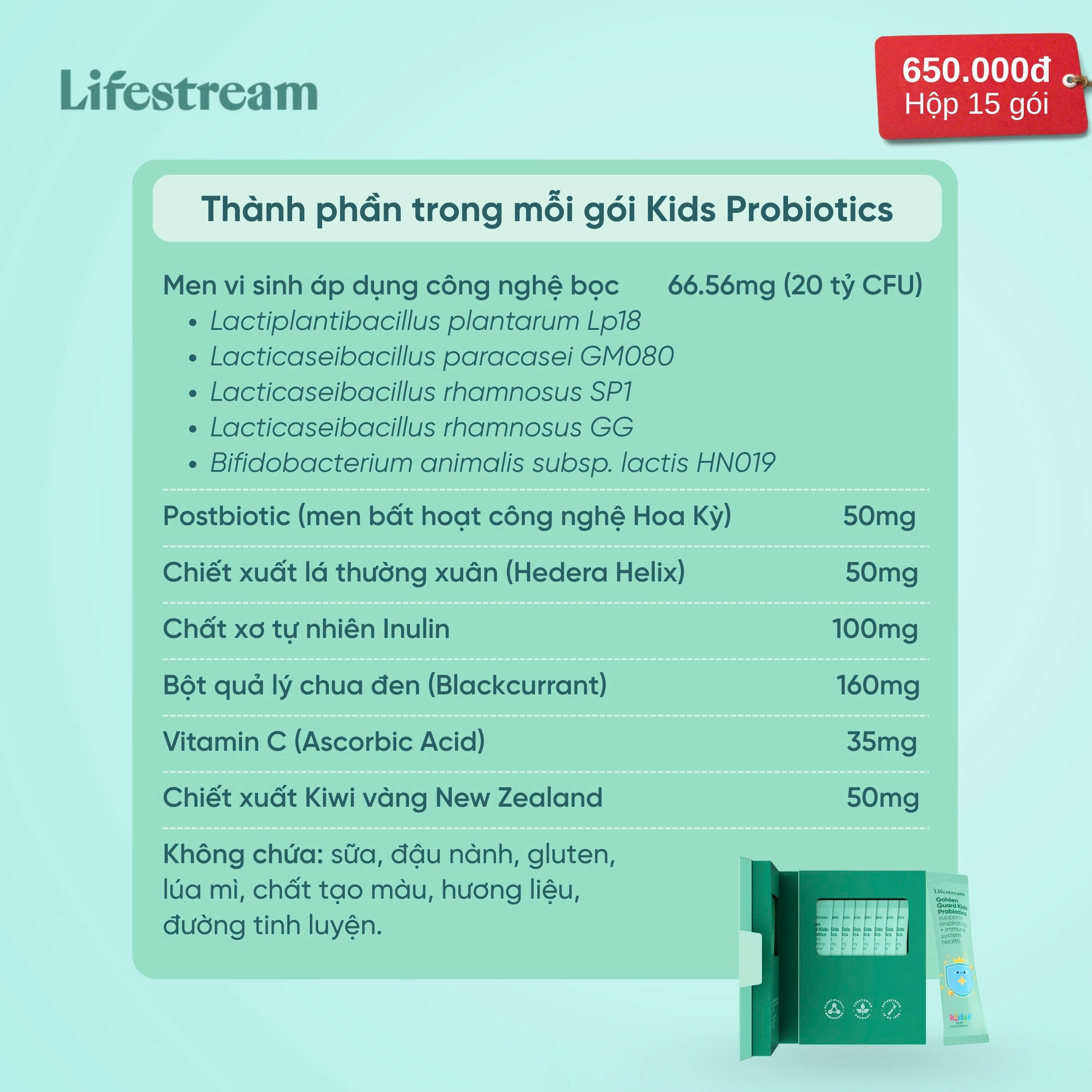 Trong mỗi gói Men vi sinh cho bé Lifestream Golden Guard Kids chứa: