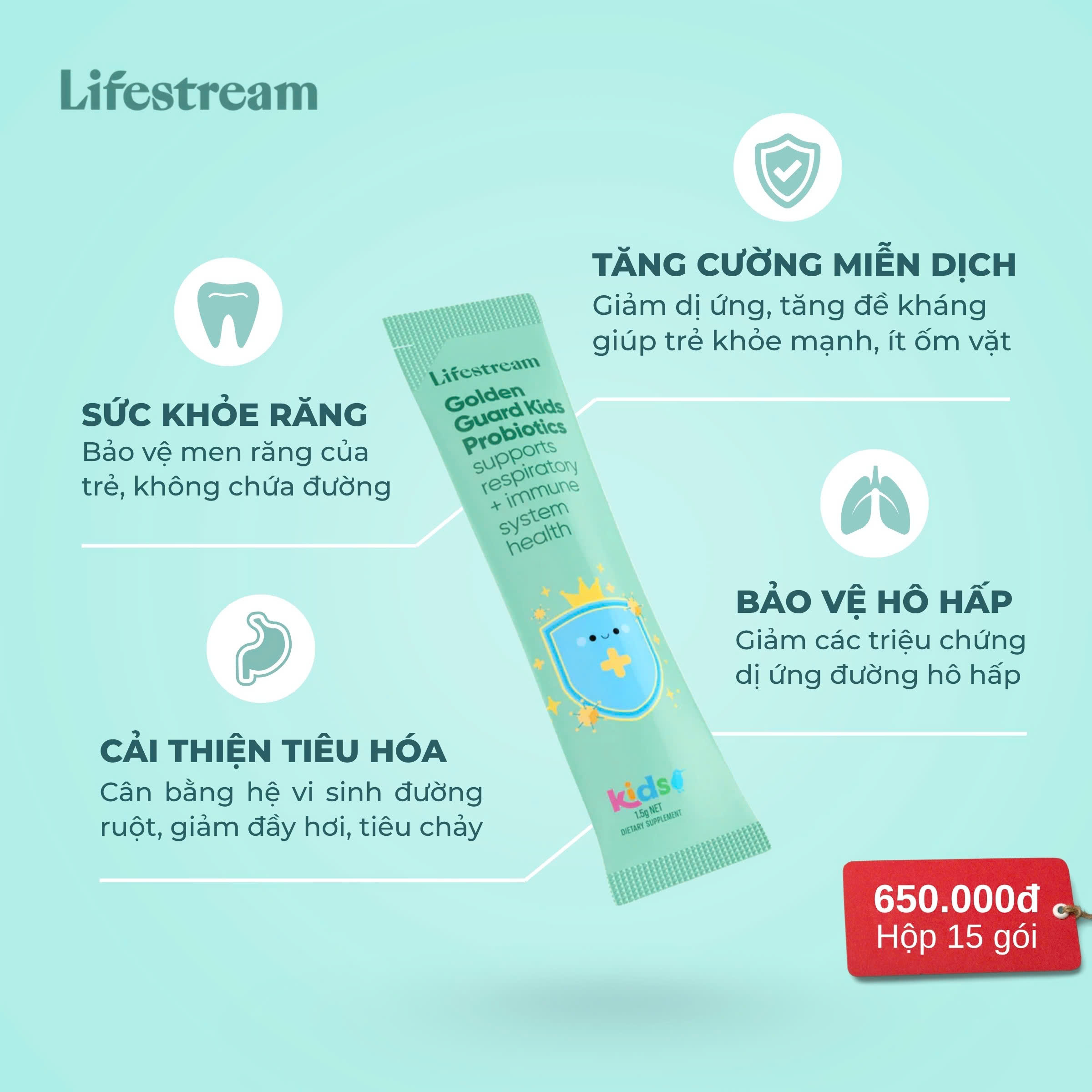 Lifestream Golden Guard Kids Probiotic: Men vi sinh hỗ trợ tiêu hóa và hô hấp cho bé