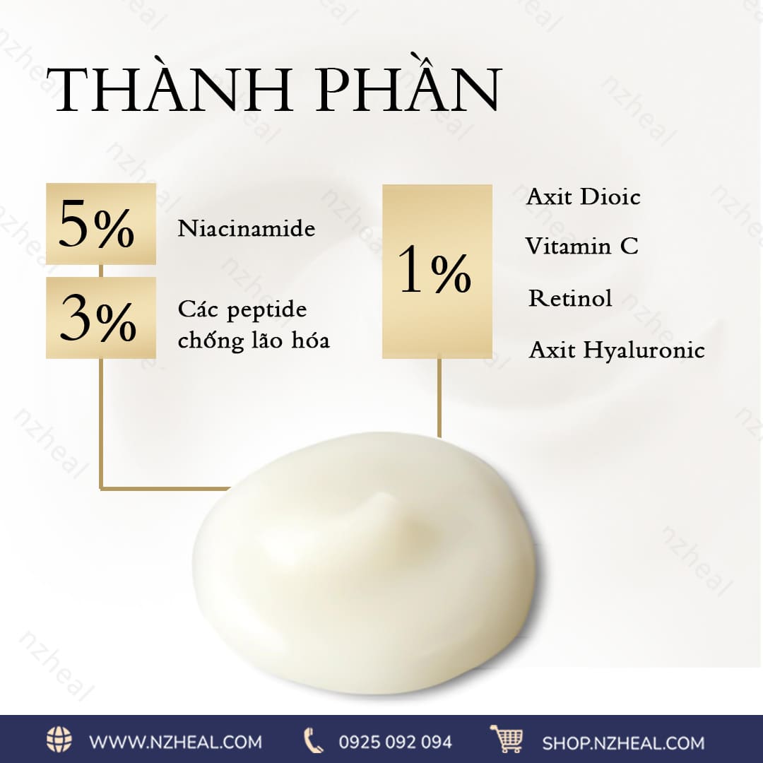 - Các peptide chống lão hóa 3%: Chống lão hoá và hỗ trợ làm căng da tức thì.